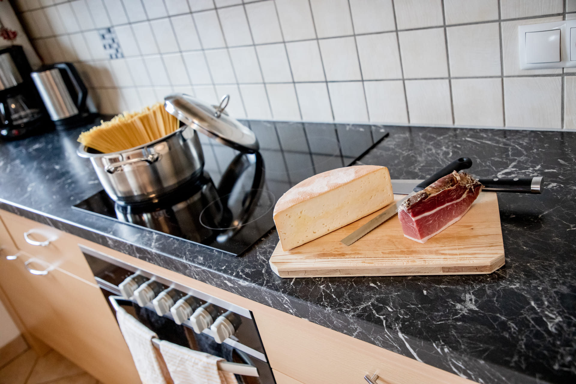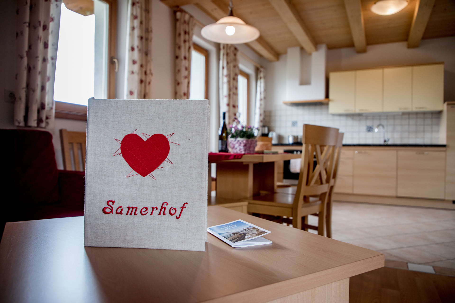 In unserer großzügigen Gemeinschaftsküche wird Kochen zum geselligen Erlebnis. Hier können Sie regionale Zutaten gemeinsam zubereiten, Geschichten austauschen und den Abend in gemütlicher Runde ausklingen lassen. Die moderne Ausstattung verbindet Komfort mit heimeligem Flair – perfekt für unvergessliche Momente am Samerhof.