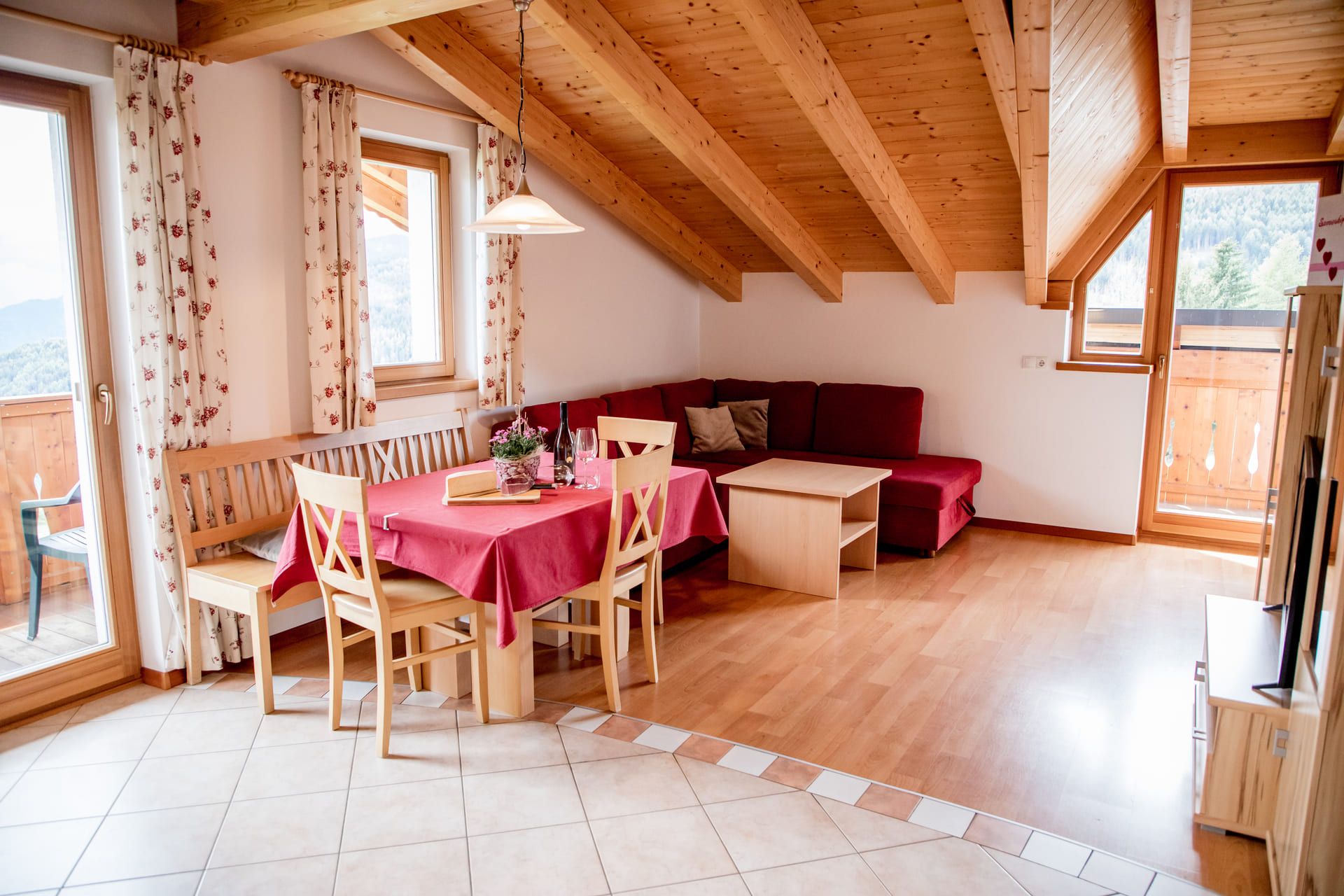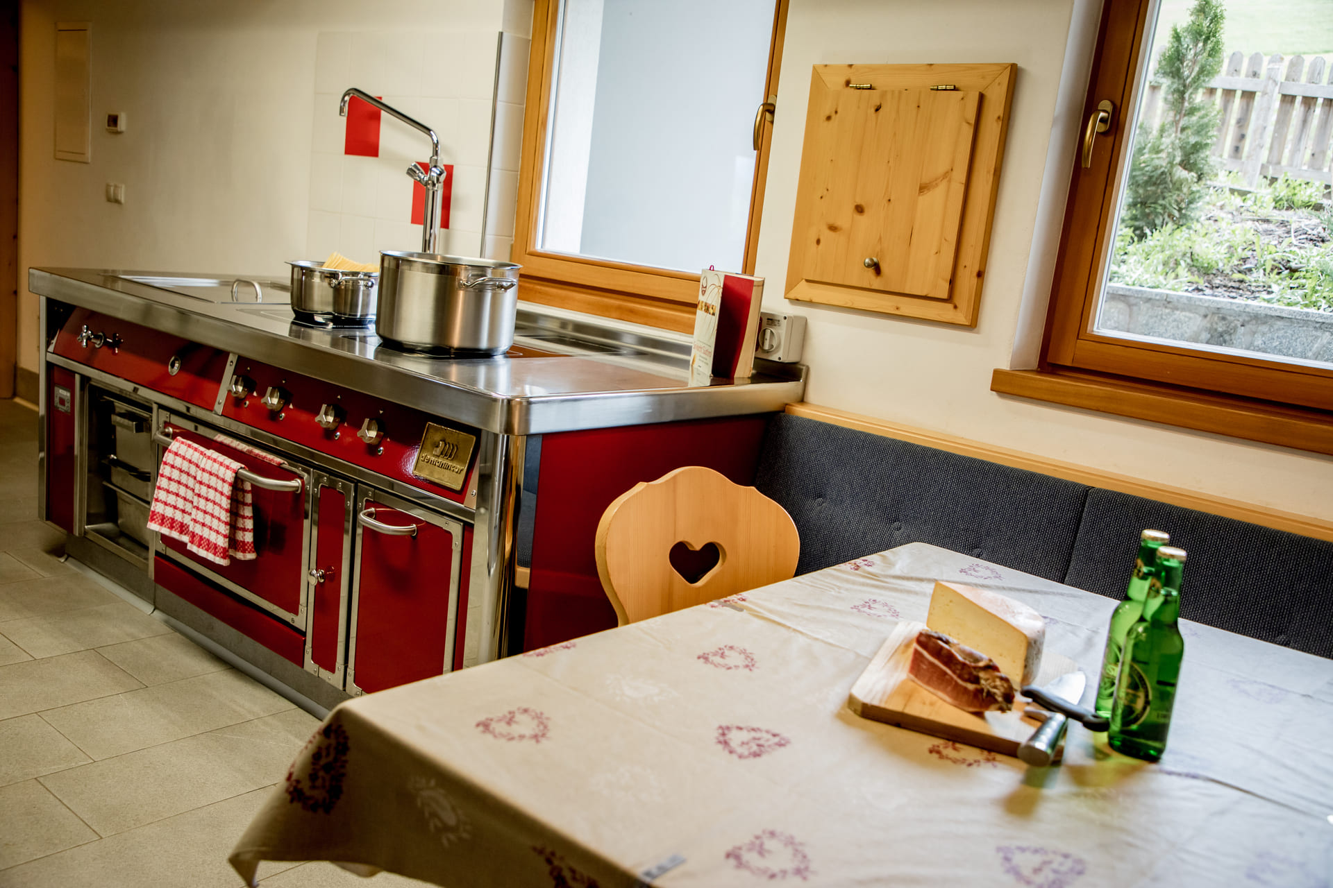 Ihr braucht mehr Platz? Wir bieten unseren Gästen die Möglichkeit eine großzügige voll ausgestattete Gastro-Küche mit gemütlicher Stube im Erdgeschoss dazu zu buchen – der perfekte Ort, um gemeinsame Zeit in gemütlicher Runde zu genießen.
